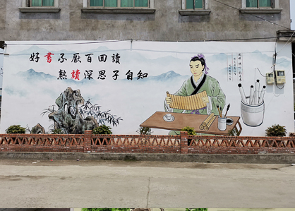 溫州市墨客墻繪藝術有限公司主要從事有個性有創意的家居裝飾墻繪、幼兒園卡通彩繪、KTV酒吧主題墻繪、3D立體墻繪、習哥彭姐文化大革命的城鄉文化宣傳墻繪等,當然還有我們獨歩武林的高墻墻繪藝術!畫高墻有時一個頭像就有兩米,不僅僅是大了型不好把握,一般習慣在陸地作戰的繪畫者往往上去后會讓你唱起一首歌:“三月里的小雨,淅瀝瀝瀝......瀝瀝……淅瀝瀝瀝下個不?!本褪谴魃夏虿粷瘢麄円矔谏厦嫜菔九两鹕?。我們施工時下面觀看的人如少女初戀般心跳,欣賞的人似紂王品酒觀妲己跳舞一樣陶醉。連村中惡犬也為我們搖尾吶喊:“……墨客墻繪……神勇無畏!